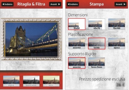 Il pagamento può essere effettuato direttamente dall’app, tramite Carta di credito o PayPal, ed entro pochi giorni un corriere espresso consegnerà le stampe all’indirizzo specificato.