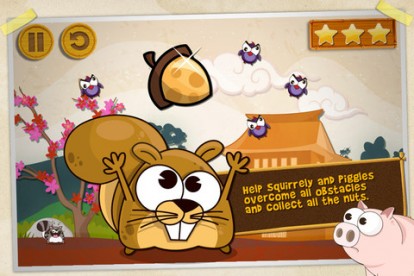 La particolarità, se così possiamo dire, sta nella catapulta che innescherà il volo del piccolo uccellino. Questa volta non ci troveremo con una fionda, bensì con un piccolo maialino che “sputerà” fuori dalla bocca lo scoiattolo, lanciandolo nell’aria. A noi il compito di indirizzare lo scoiattolo, disegnando una parabola con la giusta forza e l’esatta precisione, in modo da schivare gli elementi di disturbo, raccogliere le stellette e “atterrare” sulla ghianda.
