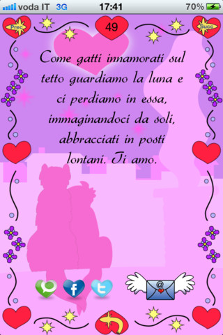Mille e una frase è un’applicazione presente su App Store che permetterà di trovare modi originali per dimostrare il proprio amore ed i propri apprezzamenti alla persona amata senza tuttavia cadere nella banalità, in quanto potremo avere a nostra disposizione innumerevoli frasi direttamente a portata di mano per trovare idee sempre nuove. Le frasi disponibili non rientrano in quelle viste e riviste, ma sono frutto delle menti degli sviluppatori e dei creatori dell’applicazioni non essendo state prese in prestito da siti disponibili sul web, ed il design permetterà di divertirci durante la scelta della frase. Al suo interno troveremo quasi 400 frasi sempre aggiornati ed originali grazie al costante lavoro degli sviluppatori così da offrire contenuti adatti alle festività attuali, come ad esempio la festa della donna; tutti gli aggiornamenti saranno gratuiti per chi avrà acquistato l’applicazione.