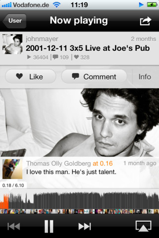 Grazie a SoundCloud per iOS potremo catturare suoni anche in mobilità sfruttando l’applicazione ufficiale del servizio web: potremo registrare una voce, un momento o una traccia musicale in pochi secondi e successivamente condividerla sia privatamente che pubblicamente su Facebook, Twitter, Tumblr e Foursquare, e ci permetterà di avere nel contempo un facile accesso al sito così da navigare e ascoltare i suoni delle persone che li condivideranno con noi a prescindere da dove ci troveremo. L’applicazione è estremamente ancorata ad una natura sociale implementando caratteristiche quali l’esplorazione, l’inserimento di “like” ed il rilascio di commenti direttamente da iOS.