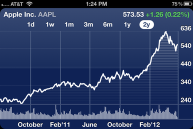 Anche l’applicazione Borsa offre una visuale alternativa quando si posiziona l’iPhone in orizzontale. Verrà infatti mostrata una tabella più ampia dei prezzi delle azioni nel corso del tempo, con la possibilità di regolare la gamma temporale fino a due anni. Trascinando il dito sullo schermo è poi possibile vedere i prezzi delle azioni in una data esatta.