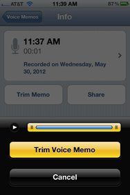 E’ possibile utilizzare l’applicazione Memo Vocali per effettuare sì delle registrazioni audio, ma anche per creare suonerie personalizzate. Vi basterà aprire l’app, registrare quello che preferite e, una volta terminata la registrazione, selezionare il file appena registrando cliccando sulla freccia a destra. Dalla nuova schermata cliccate su “Taglia memo” se desiderate tagliare la registrazione e conservarne solo una parte. Ora, dalla stessa schermata, cliccate su Condividi e selezionate E-mail per inviare il file in formato .m4a. Salvate il file sul computer, rinominatelo in .m4r, apritelo con iTunes e automaticamente verrà salvato nelle suonerie per iPhone.