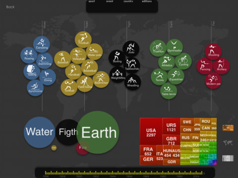Si tratta di un’applicazione dedicata ai giochi olimpici estivi che ci permetterà di consultare tutte le informazioni in merito alle statistiche delle medaglie mostrate tramite un’interfaccia esplorabile con visuali dinamiche. Ne saranno presenti due principali che permetteranno di navigare tra tutte e 26 le edizioni, a partire da quella del 1986 di Atene fino a quella del 2008 di Beijing, come anche i dati su tutte e 31 le discipline olimpiche ed oltre 25.000 vincitori di medaglie.
