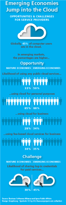 Le economie emergenti sono mercati già maturi per i servizi di cloud computing – anche i servizi prepagati – ma troppo spesso gli utenti di quei mercati sono pronti a condividere le credenziali d’accesso, il che apre la strada a potenziali rischi di abuso nelle licenze software, come riporta Business Software Alliance (BSA) sul proprio blog,