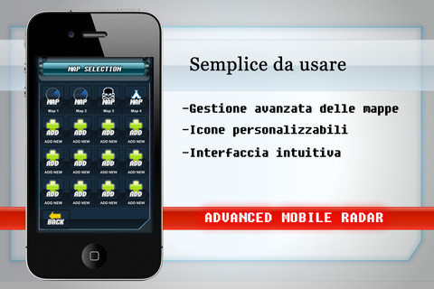 Advanced Mobile Radar è un software di navigazione satellitare in stile radar per la geo-localizzazione universale che non necessita di connessione internet per il suo funzionamento.