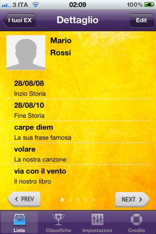 Ex, come già accennato nell’introduzione, è un’app per iPhone che permette di creare una vera e propria lista degli Ex, da aggiornare in continuazione e portare sempre con sé. Grazie a quest’applicazione, quindi, potremo portare sempre con noi una lista che racchiudere i ricordi amorosi con fotografie, racconti, dettagli, pagelle e, per chiudere in bellezza, anche una vera e propria classifica.