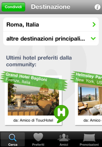 ToucHotel è un’applicazione gratuita per iPhone che permette di prenotare online hotel da 1 a 5 stelle, bed and breakfast e appartamenti nelle principali capitali europee e internazionali. Con un database di oltre 150.000 strutture ricettive in circa 30.000 destinazioni internazionali, ed un sofisticato algoritmo per proporre le migliori offerte disponibili, ToucHotel riesce a soddisfare ogni tipo d’esigenza per chi viaggia per lavoro o turismo.