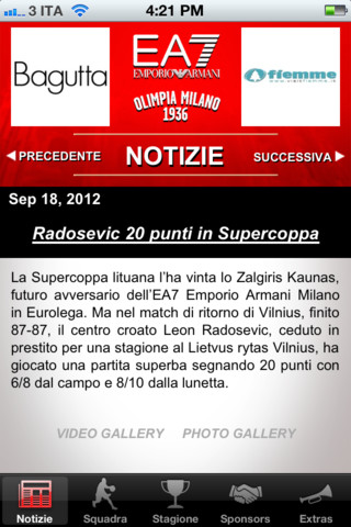 EA7 Olimpia Milano è appunto l’applicazione ufficiale dell’EA7 Pallacanestro Olimpia Milano che consente di rimanere costantemente aggiornati grazie alle notizie relative alla squadra di pallacanestro anche in mobilità, consultando tutte le informazioni direttamente sul proprio iPhone. L’applicaizone è divisa in Notizie, Squadra, Stagione, Sponsors ed Extras.