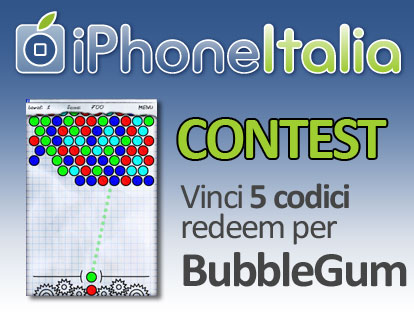 Oggi mettiamo in palio 5 codici per il puzzle game BubbleGum, disponibile su AppStore al prezzo di 0,79€.