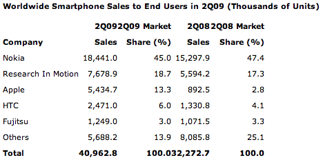Gartner ha reso noto gli ultimi dati di vendita relativi al secondo trimestre del 2009, ed i risultati sono tutti a favore dell’iPhone.