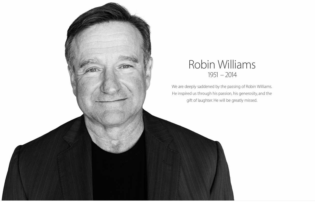 La pagina commemorativa su Robin Williams è apparsa sulla homepage del sito di Apple (.com). Oltre alla pagina in memoria dell’attore, è apparso anche un messaggio di Apple che recita: