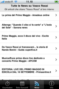 Vasco Live è un’applicazione pensata per tutti i fan di Vasco Rossi e che, per il momento, contiene soltanto il countdown dei giorni che mancano al primo concerto dell'”European Live Indoor Tour 2009 – 2010″ che si terrà a Pesaro il 6 ottobre.