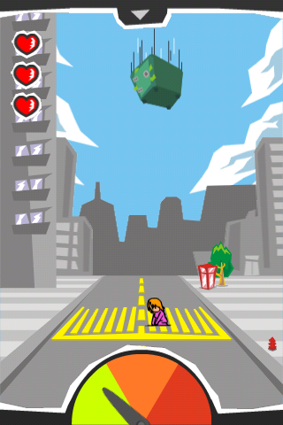 Per farlo dobbiamo urlare nel microfono dell’iPhone in modo da raggiungere la forza richiesta (rappresentata da un apposito grafico) e distruggere l’oggetto in questione. Dovremo quindi salvare un bimbo che sta per essere investito da un camion, od evitare una casa lanciata da un gigantesco robot!