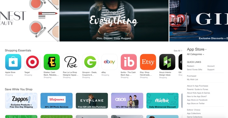 A breve potremo vedere quindi uno store più organizzato con la nuova categoria “Shopping”. Sicuramente la nuova categoria non è stata introdotta solo per una questione di organizzazione ma anche per mettere in evidenza le potenzialità di Apple Pay nei paesi supportati dal servizio.