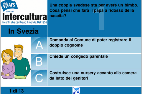 Chi desidera lanciarsi in un viaggio virtuale tra le curiosità del mondo, ha un’ampia scelta di possibilità. Il gioco si svolge in 13 tappe, che partono dalla vicina Europa, con una serie di domande ambientate in Svezia, Francia, Belgio, Polonia e Turchia, Paesi vicino a noi, ma dove è facile trovare aspetti della vita quotidiana regolamentati in modo diverso. Si prosegue con Egitto, Cina e India, Thailandia, Taiwan, luoghi dove si rischia di incappare in qualche incidente interculturale se non si presta attenzione a gesti, atteggiamenti e simboli che in Italia possono avere significato differente. Infine il bon ton matrimoniale in USA e le relazioni tra colleghi in Brasile, per scoprire che a volte sono in agguato delle vere e proprie gaffes quando meno te lo aspetti.