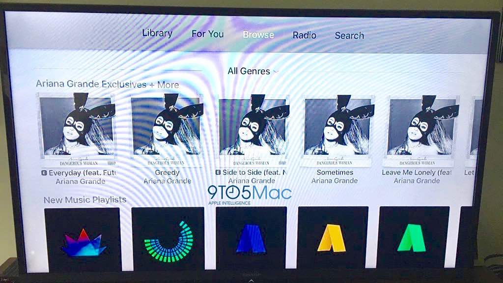 Poco tempo fa vi abbiamo parlato dei futuri miglioramenti di Apple Music in iOS 10. Il servizio in streaming di Apple dovrebbe migliorare nella grafica e nel layout in modo da risultare più comodo e meno dispersivo per gli utenti. A confermare questa ipotesi arriva una foto scattata da un utente Apple su tvOS, il sistema operativo di Apple TV, che mostra un cambiamento nell’app relativa alla musica.
