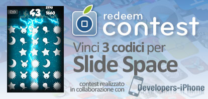 iPhoneItalia Redeem Contest è il nostro concorso quotidiano in cui mettiamo in palio codici promozionali per scaricare gratuitamente e legalmente applicazioni e giochi da App Store. Oggi mettiamo in palio 3 codici per “Slide Space″ (Link: AppStore – Prezzo: 0,79€) realizzata dallo sviluppatore Dimitri Giani.