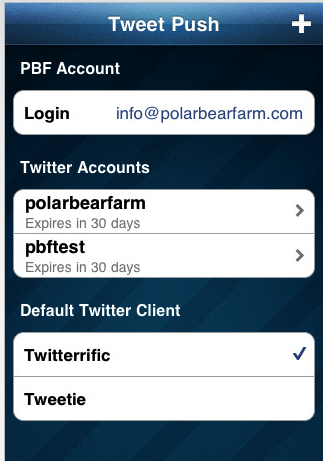 Questa applicazione consente di ricevere le notiriche push direttamente dal proprio account Twitter, selezionando uno dei client compatibili (Twitterific, Tweetie 2, BirdFeed, Twitterena, SimplyTweet Pro, TwitterFon e Twitterlator).