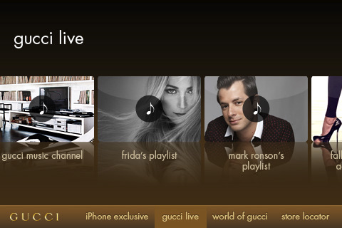 Possiamo anche ascoltare il canale Gucci Music Channel ed avere informazioni sulla posizione degli store vicini alla nostra posizione.