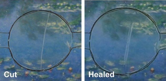I ricercatori hanno condotto diversi test sul materiale, tra cui quelli sulla capacità di ripararsi da tagli e graffi. Dopo averlo letteralmente strappato a metà, questo materiale è stato in grado di ricucirsi automaticamente in meno di 24 ore.