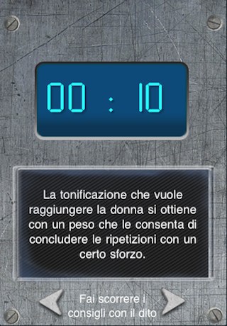 - timer per controllare le pause fra una ripetizione e l’altra;