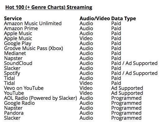 I servizi a pagamento come Apple Music avranno un peso maggiore nei grafici Billboard, rispetto a servizi gratuiti come YouTube o ai servizi ibridi come Spotify, per stilare le classifiche Hot 100 e Billboard 200 che riguardano i brani e gli album più ascoltati della settimana. In questo modo, verranno premiati di più gli ascolti sui servizi a pagamento rispetto a quelli su servizi gratuiti e supportati dalla pubblicità.
