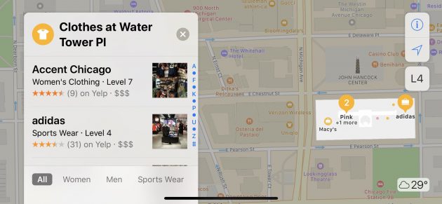 Grazie a queste mappe, gli utenti possono utilizzare Mappe di Apple per trovare gate, terminal, bagni, zona controlli e punti di interesse come negozi e ristoranti all’interno degli aeroporti.