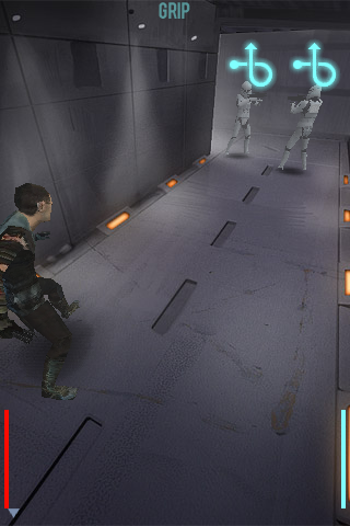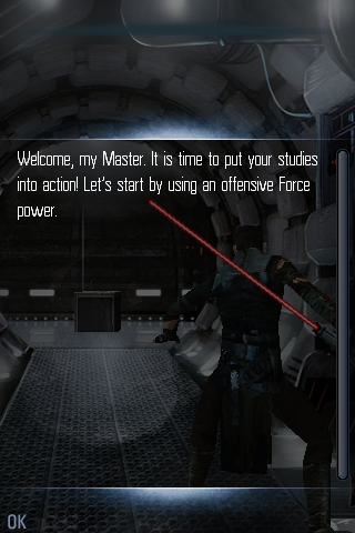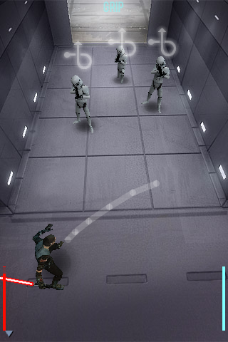 Diciamo subito che il giocare a Star Wars TFU si limita soltanto ad effettuare particolari mosse con la spada laser, semplicemente muovendo il dito sul display nello stesso modo in cui ci viene indicato sullo schermo.