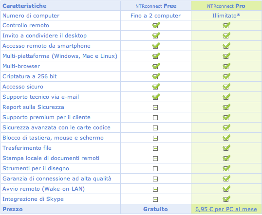 Queste sono le differenze tra le versioni Free e Pro (logicamente si parla dell’applicazione per computer).