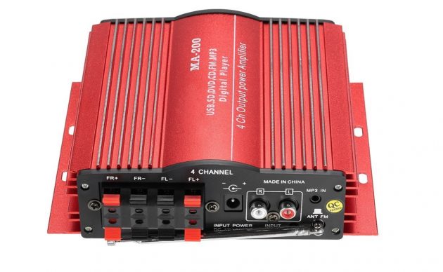 KKmoon MA200 è un amplificatore stereo a 4 Canali HiFi per auto. Può riprodurre musica anche tramite USB o schede SD/MMC.