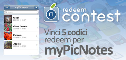 iPhoneItalia Redeem Contest è il nostro concorso quotidiano in cui mettiamo in palio codici promozionali per scaricare gratuitamente e legalmente applicazioni e giochi da App Store. Oggi mettiamo in palio 5 codici per “myPicNotes″ (Link AppStore – Prezzo: 0,79€)