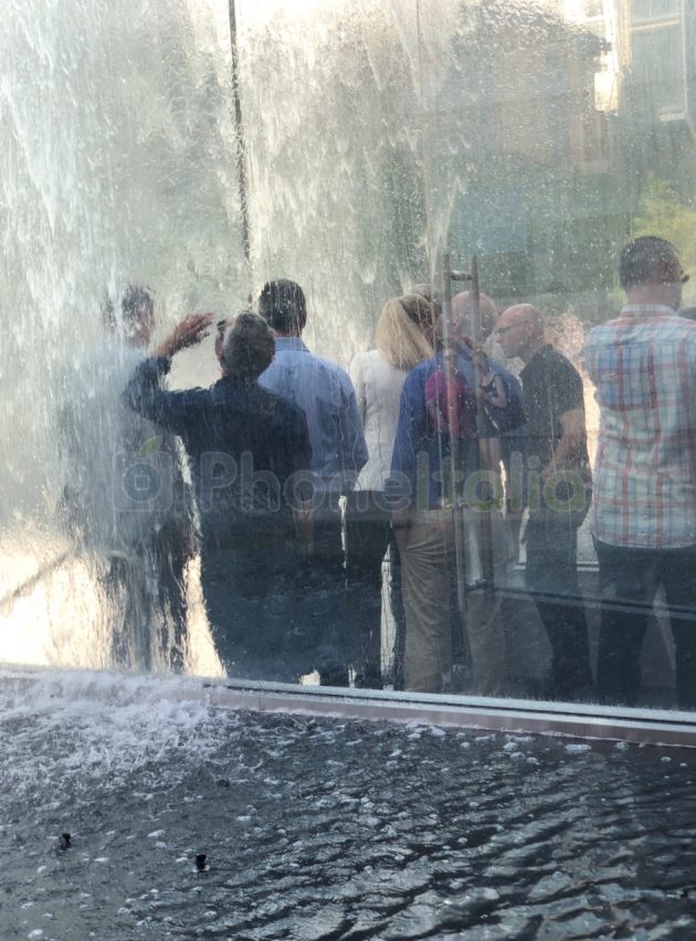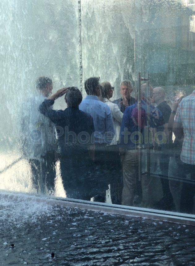 Il primo flagship Apple in Italia si presenterà domani in tutta la sua bellezza, sia esterna che interna. Le pareti di cristallo alte 8 metri fanno da vero e proprio contenitore di giochi d’acqua, ma durante la sera le cose cambiano, perché le scalinate della piazza può ospitare gli spettatori e le pareti di cristallo si trasformano in un grande schermo su cui proiettare film e video di vario tipo.
