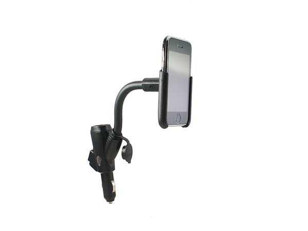 Un supporto da auto che va collegato alla presa accendisigari. Oltre a fare da supporto, il Made powered ricarica l’iPhone e contiene due porte USB.