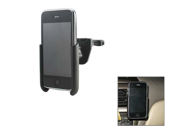 Un semplice supporto auto da collegare ai bocchettoni dell’aria condizionata. Ruotabile a 360 gradi.