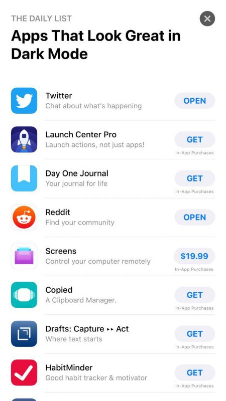 A quanto pare, negli Stati Uniti l’App Store ha iniziato a mostrare una sezione con le app che saranno compatibili con la nuova Dark Mode: