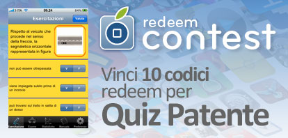 iPhoneItalia Redeem Contest è il nostro concorso quotidiano in cui mettiamo in palio codici promozionali per scaricare gratuitamente e legalmente applicazioni e giochi da App Store. Oggi mettiamo in palio 10 codici per “Quiz Patente″ (link AppStore – Prezzo: 0,79€)