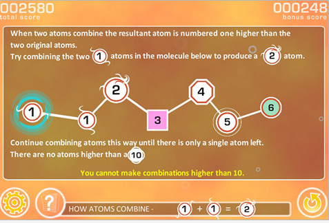 Dovremo quindi unire gli atomi dello stesso tipo per formarne uno con un numero atomico maggiore. I livelli da superare sono 50, con difficoltà sempre maggiore in quanto dovremo formare molecole sempre più complesse.