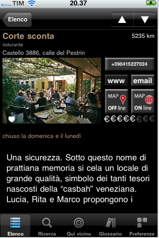 Oltre ai locali di Venezia sono segnalati anche quelli nelle isole della laguna. Altra cosa interessante è la presenza della mappa offline, cosultabile anche senza connessione internet.