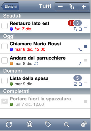Possiamo anche stabilire la priorità dei vari todo e modificarli in qualsiasi momento, con tanto di funzione sincronizzazione con iCal (Mac) tramite Appigo Sync, scaricabile gratuitamente da qui.