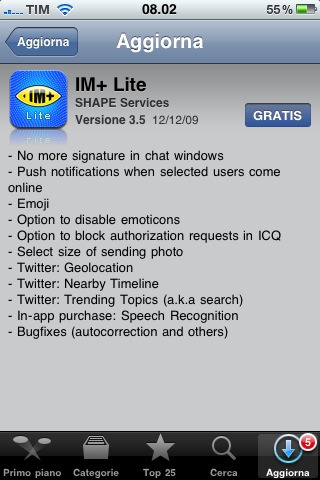 La versione IM+ Lite (AppStore – Gratis) si aggiorna con le stesse novità della versione full.