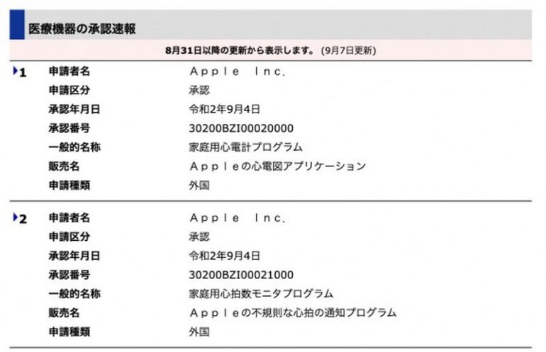 L’approvazione è stata confermata dalla Japanese Association for the Advancement of Medical Equipment (JAAME) venerdì 4 settembre e successivamente segnalata dal blog tecnologico iPhone Mania.
