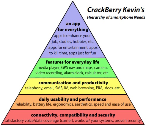 Il sito Crackberry ha pubblicato un’interessante studio su quello che uno smartphone dovrebbe avere per essere perfetto, con tanto di gerarchia dei valori.