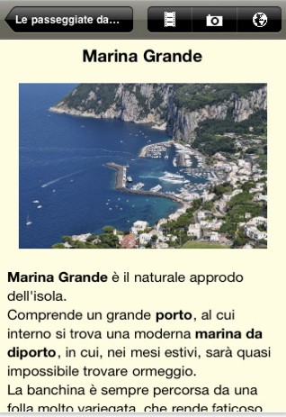 • Le passeggiate da Capri (con testi, foto e video): Marina Grande, La Piazzetta, La Certosa e la Via Krupp, I Faraglioni e Villa Malaparte, Villa Jovis e Villa Lysis, Marina Piccola.