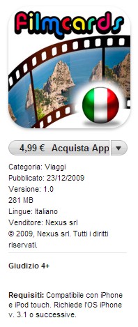 Nexus srl ha pubblicato su AppStore una nuova “Filmcards“, tutta dedicata alla bellissima isola di Capri. Esploriamola grazie a numerosi testi, foto originali e lunghi video, dalla storia alle bellezze naturali, costruzioni storiche, mitiche ville e tanto altro.