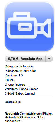 Sabec ha pubblicato una nuova applicazione che consente di reigstrare video su iPhone 3G e 2G.