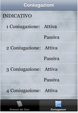 Grazie a iLatino è possibile accedere alla sezione sintassi con una serie di spiegazioni molto utili e visualizzare le 4 coniugazioni della lingua.