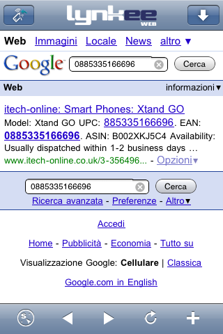 Grazie a questa applicazione è possibile identificare numerosi prodotti di consumo, giornali, DVD, libri, biglietti da visita e tanto altro semplicemente posizionando la fotocamera in prossimità del codice.
