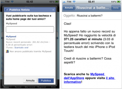 Con queste nuove caratteristiche, il divertimento è sicuramente maggiore. Possiamo quindi allenarci a scrivere velocemente su iPhone e competere con altri utenti. Grazie anche alle varie info che vengono fornite (caratteri/min, percentuali errori, tempo impiegato), potete davvero competere con i vostri amici, magari sfidandoli via mail!