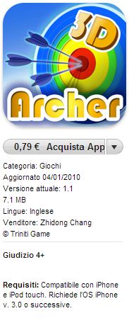 Archer è un gioco presente da poco meno di un mese su AppStore e porta il tiro con l’arco su iPhone con una grafica 3D stile Wii Sport.