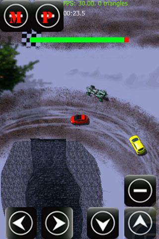 Oltre che in single player, Racing Mania ha anche una modalità multiplayer Bluetooth, per sfidare i propri amici in corse all’ultimo respiro. Come vedete la grafica è molto curata, le auto riprendono stili di vetture realmente esistenti e i controlli sono ottimamente implementati, grazie ad una modalità che fa uso del touchscreen e di 4 frecce per accelerare/frenare e sterzare.